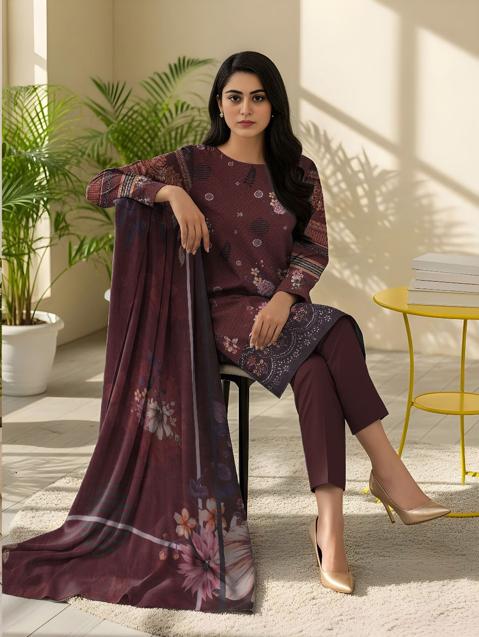 3pc Print EMB Viscose Bareeze V-2541