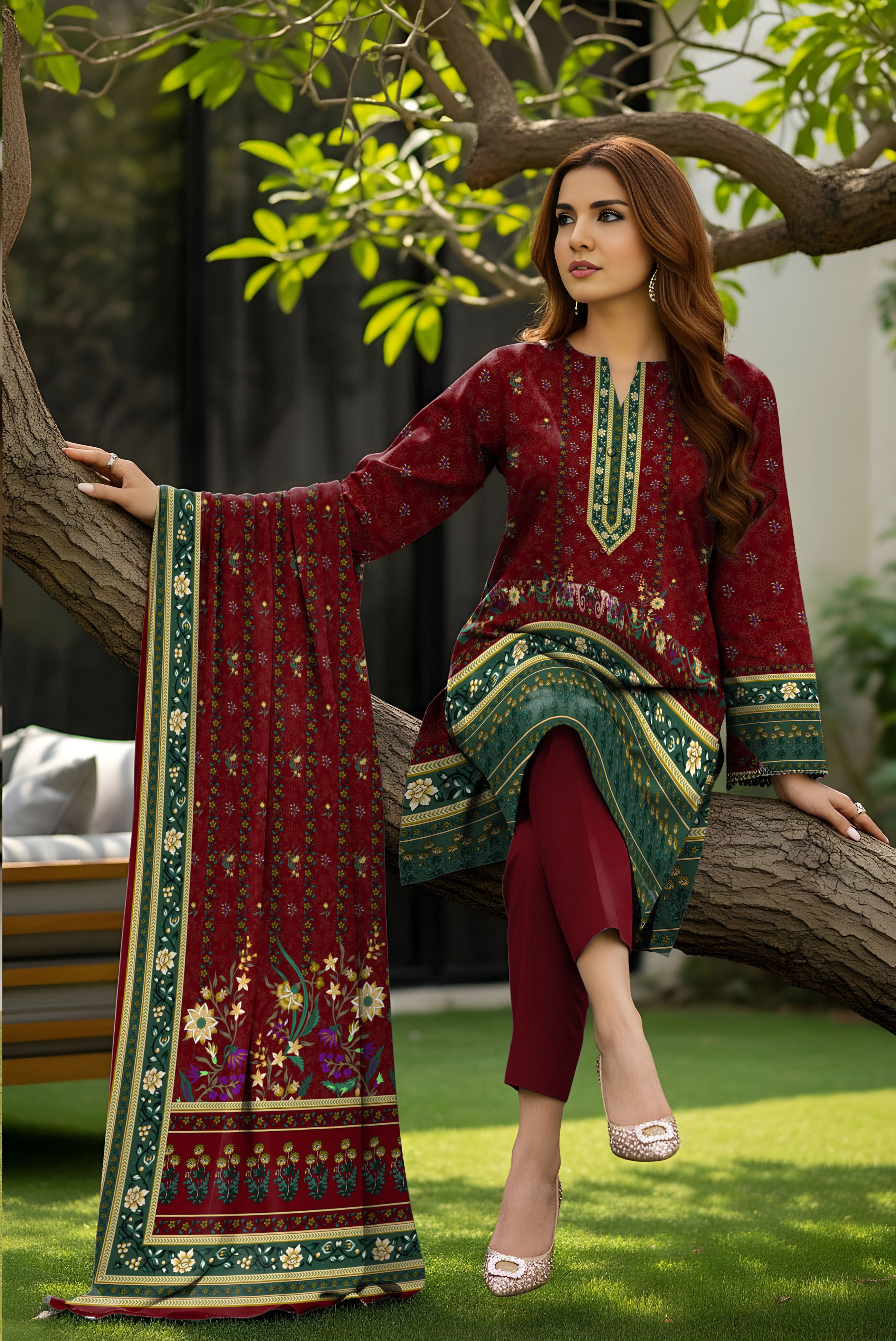 3-Piece Winter Vintax Peach Suit Shirt: Printed Vintax Peach Trouser: Dyed Vintax Peach Dupatta: Printed Vintax Peach...