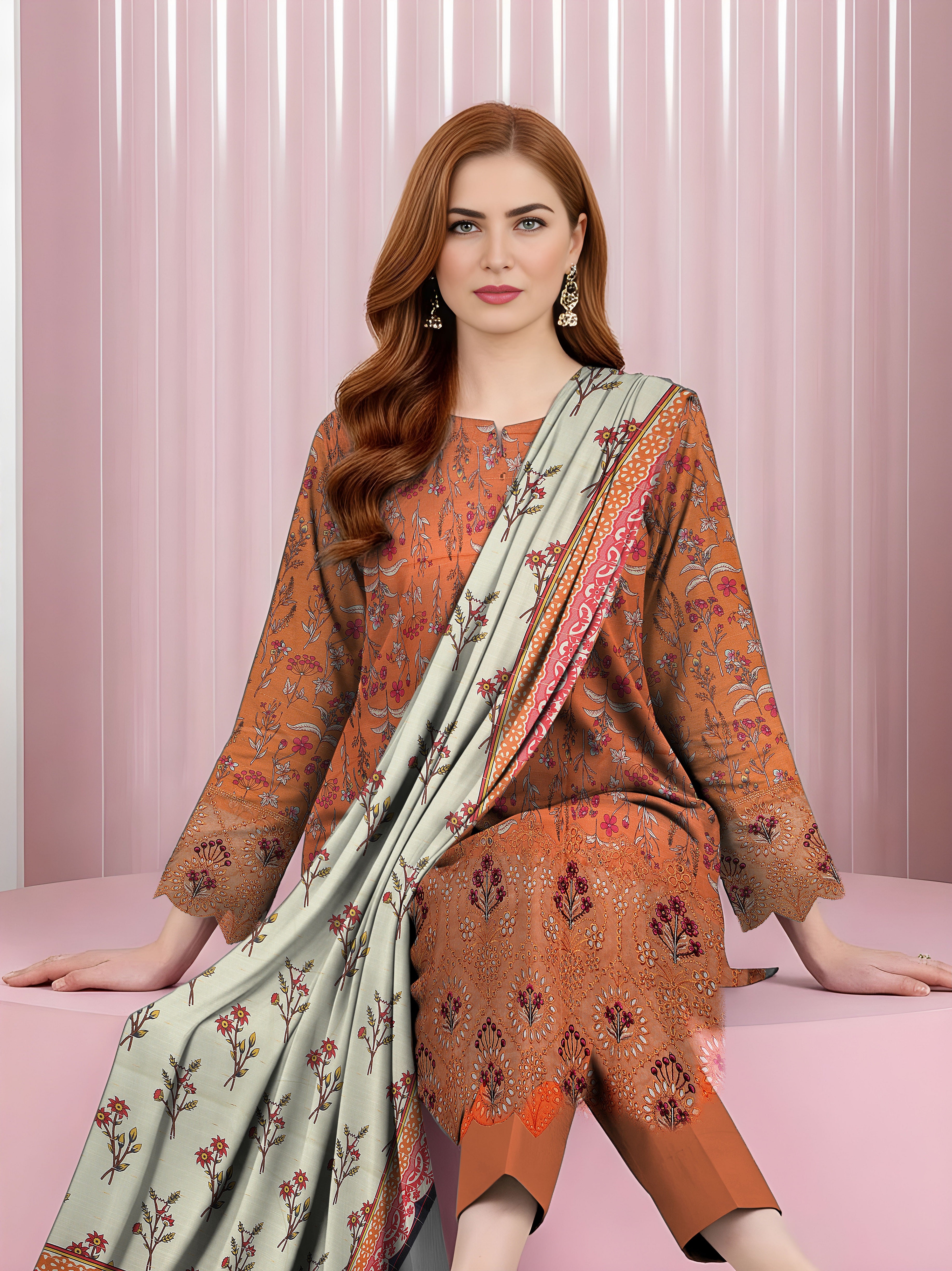 3-Piece Winter Printed Fancy Embroidered Khaddar Suit