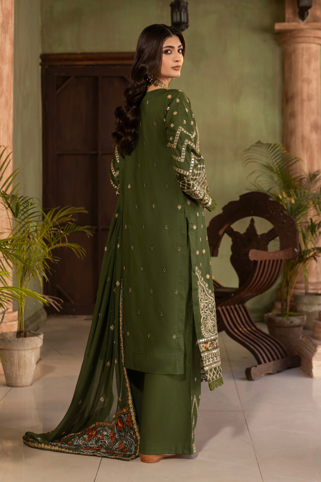 Unstitched Fancy Embroidered Shirt Bac